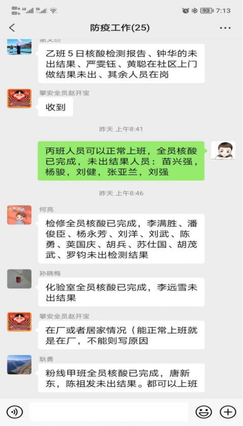 受疫情影響,在人員上攀川藍(lán)鼎封控區(qū)無法上班共計(jì)17人,15人居住地在封控區(qū),無法回家就近賓館安排住宿。因部分人員無法正常到崗,川藍(lán)鼎砂漿暫停生產(chǎn),只留3人駐場(chǎng),其余人員抽調(diào)脫硫,協(xié)助攀藍(lán)鼎保產(chǎn)、防疫工作。因疫情原因通勤問題,員工上下班乘車?yán)щy。公司啟用私車公用,由各班私家車接送,保證員工正常到崗,安全回家。